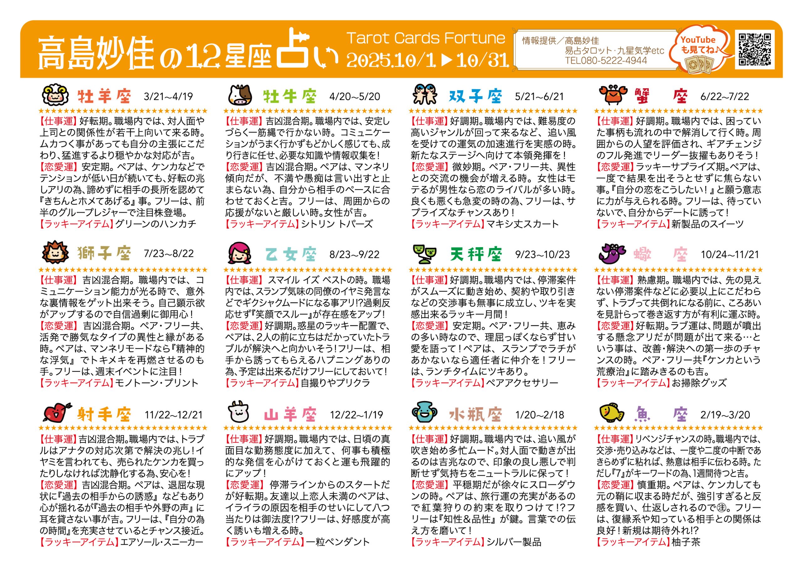 Tarot Card Fortune 2025.10/1→10/31